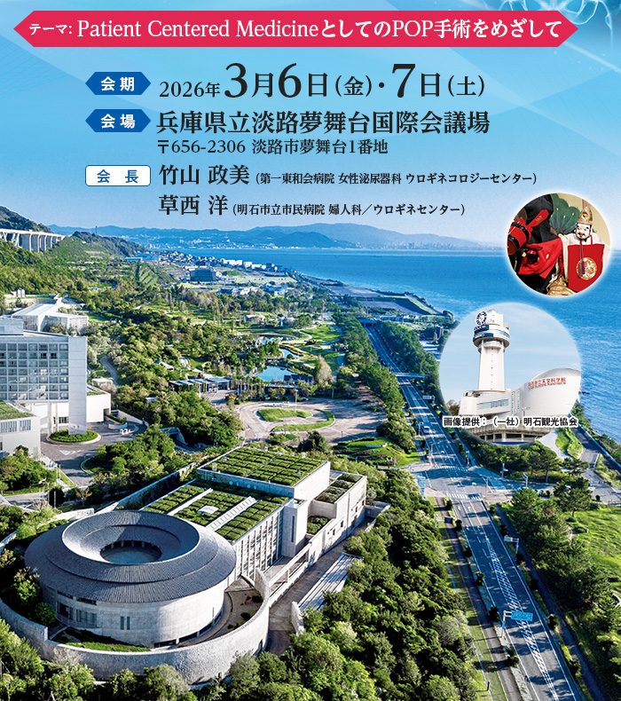今回の学会テーマは「Patient Centered Medicine(患者中心の医療)としてのPOP手術をめざして」です。患者さま一人ひとりに寄り添った医療の発展を目指し、最新の知見が共有される場となります。